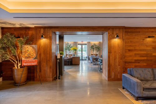 One of the most striking results is the entranceway—a sleek, inviting threshold that harmonizes with the hotel’s interior while setting the stage for a modern urban trattoria. The transformation converted a retail storefront into Alta Strada’s first DC trattoria, completely redefining the space for dining, bar service, and hospitality.