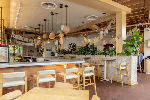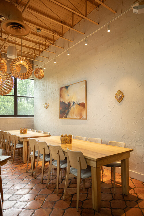 The project was a complete build out, from the open kitchen to the expansive dining room, private dining space, bar, and patio, where every square foot was thoughtfully designed and executed. Custom millwork, paired with showroom-style windows and integrated Mexican art, demonstrates the seamless collaboration between designer and construction teams.