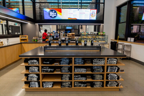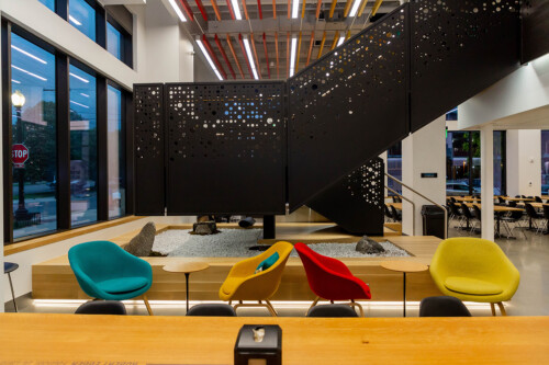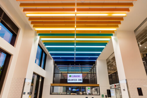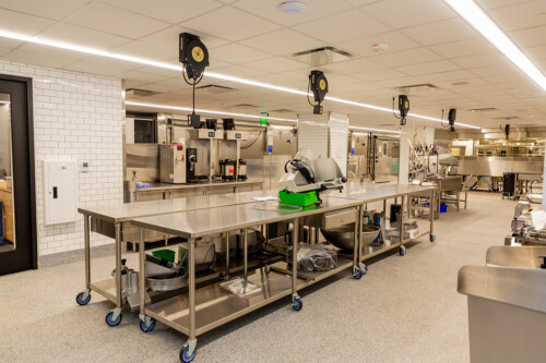 With this build, DC Central Kitchen brought its office staff, as well as culinary kitchen and teaching kitchen, volunteer space and a café into one 35,000 sf facility in SE DC. It runs one of the most ambitious and successful community kitchens, attempting to provide nutritious food options in the underserved areas in the City to leave no one hungry.