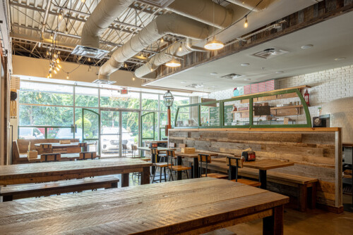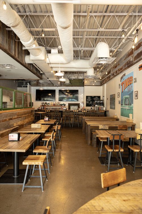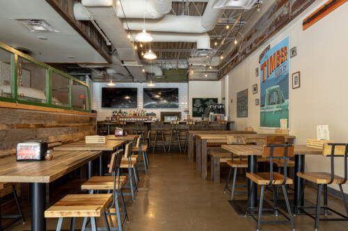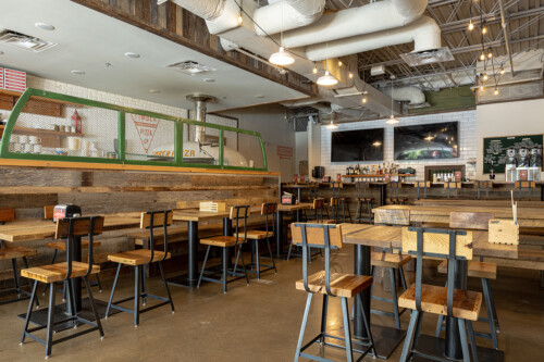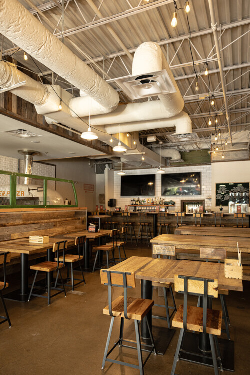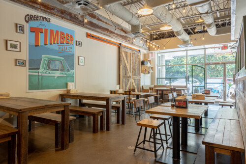 We were thrilled to help bring another Timber Pizza location to life. The McLean interior blends authentic rustic charm with warm sophistication, combining salvaged millwork, exposed structural elements, and gleaming copper accents. The result is a welcoming, nostalgic atmosphere—perfect for lingering over wood-fired pizza pies—while delivering an efficient, guest-friendly experience in a compact urban space.
